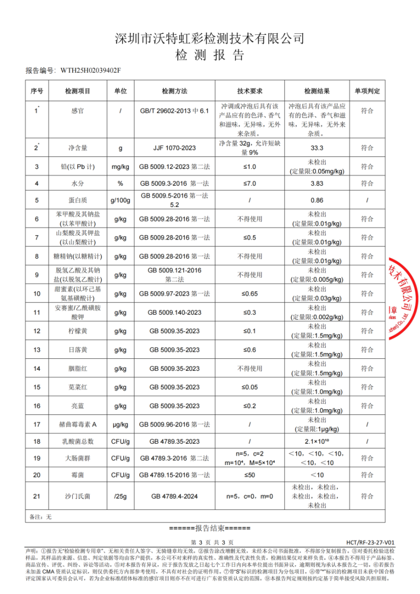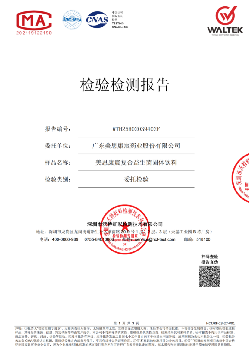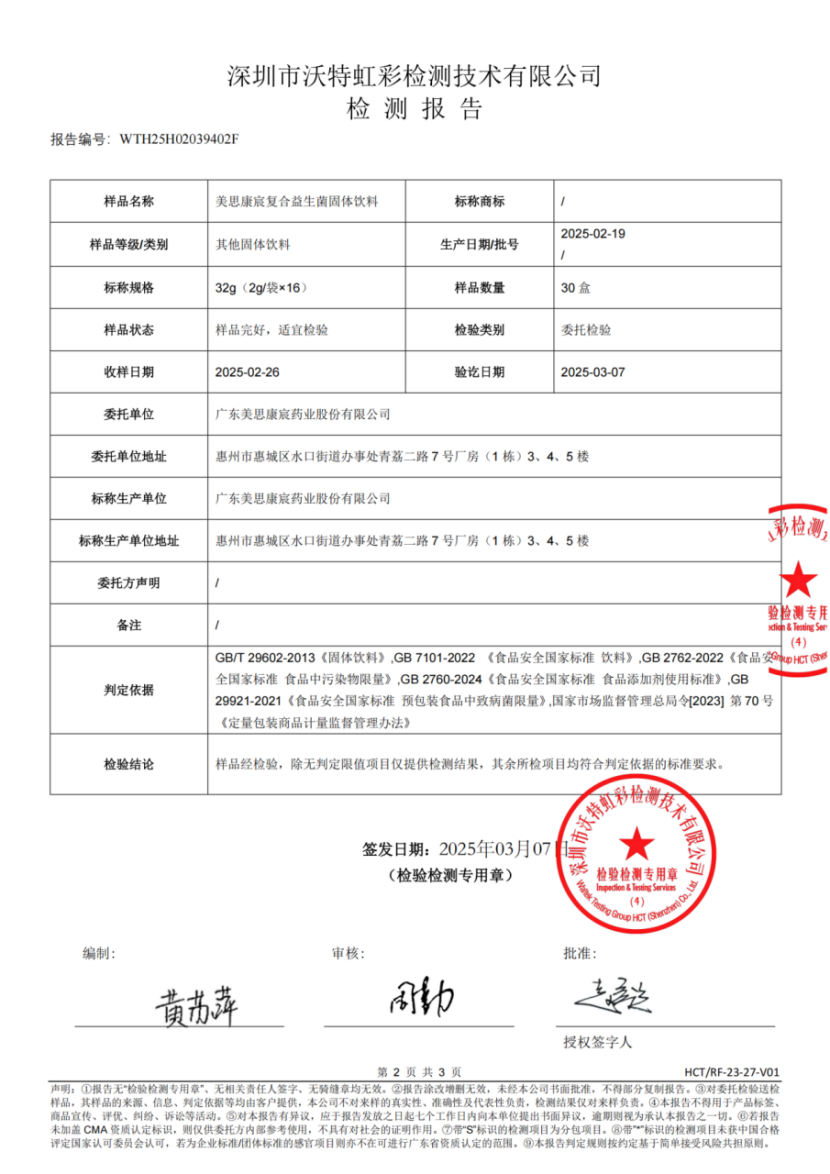 美思康宸复合益生菌2025检测报告