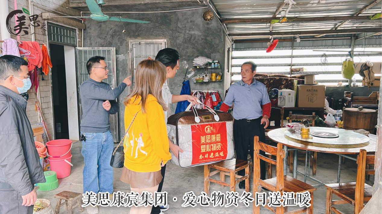 2021年11月15日,美思康宸集团为惠州产业园区所在的水口街道办的130多户低保户送去精心准备的爱心棉被,送去初冬里的第一份温暖关爱。