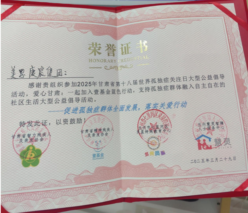 2025年4月2日是第18个世界孤独症关注日。为传递社会关爱,3月29日,由兰州市残联指导、多家公益机构联合主办的“蓝色倡导活动月”启动仪式在兰州万达茂圆满举行。美思康宸集团作为爱心企业代表受邀参与,以实际行动践行社会责任,助力孤独症群体融入社会。