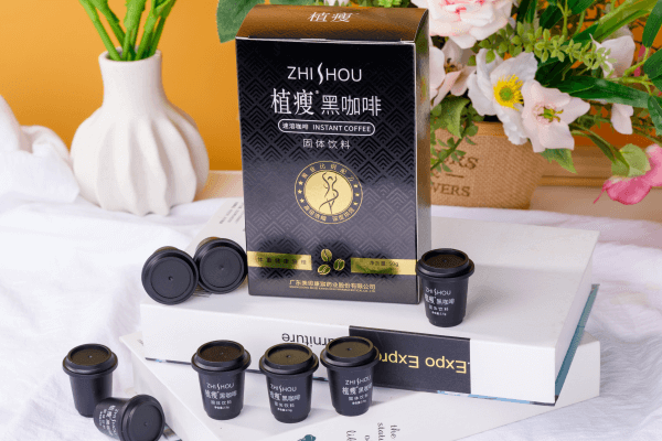 由广东美思康宸药业股份有限公司生产的植瘦黑咖啡固体饮料,配料干净,咖啡粉和玉米须提取物,高倍浓缩,深度烘焙。